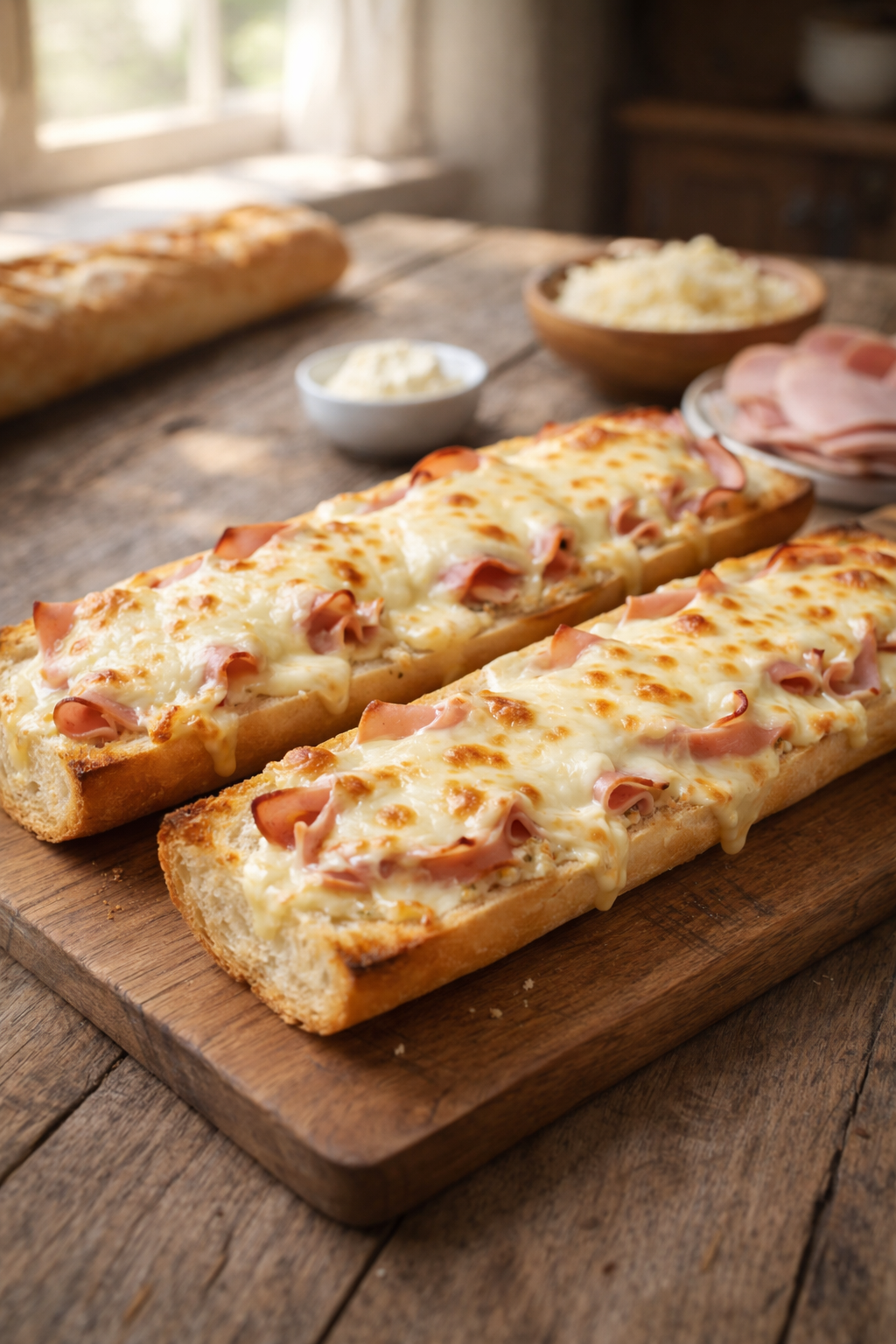Pourquoi succomber à la baguette gratinée à la crème fraîche, fromage et jambon ?