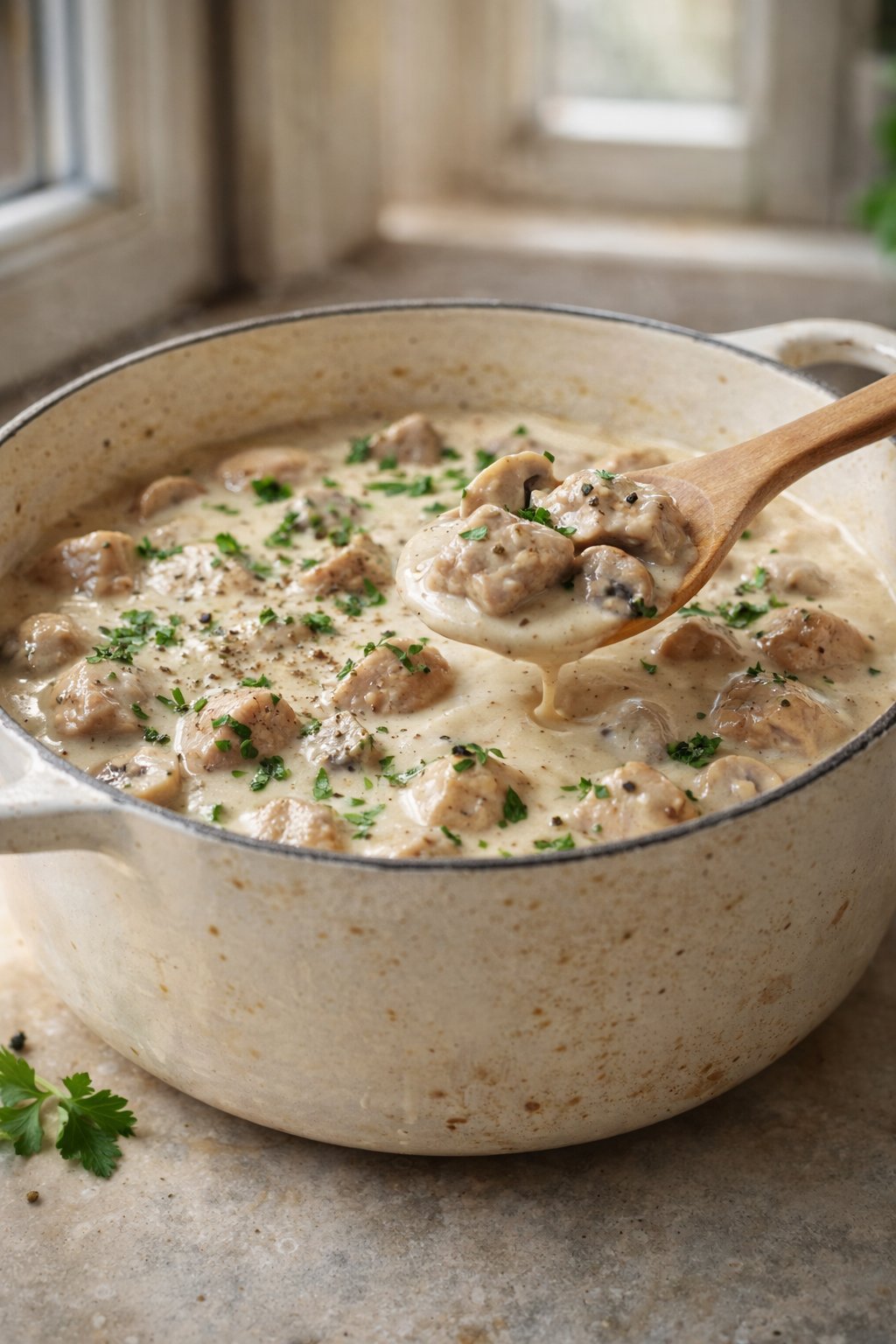Pour une sauce crémeuse, utilisez de la crème fraîche épaisse et du bouillon de volaille. Ajoutez du thym, du sel et du poivre. Cela rendra la sauce onctueuse et savoureuse.