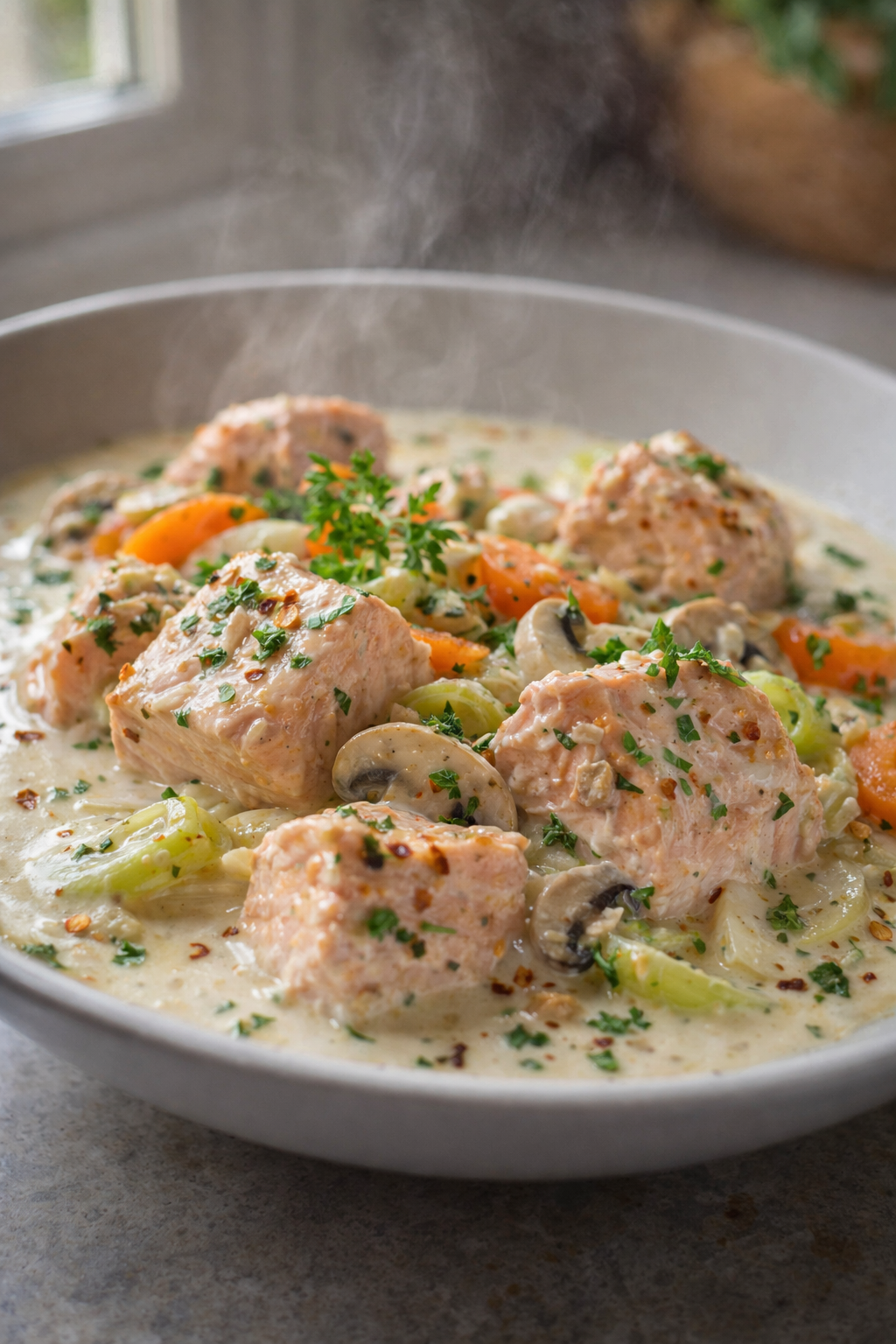 Cette phrase est très vraie pour la blanquette de saumon. Chaque ingrédient est important pour l’équilibre des saveurs et la texture du plat.
