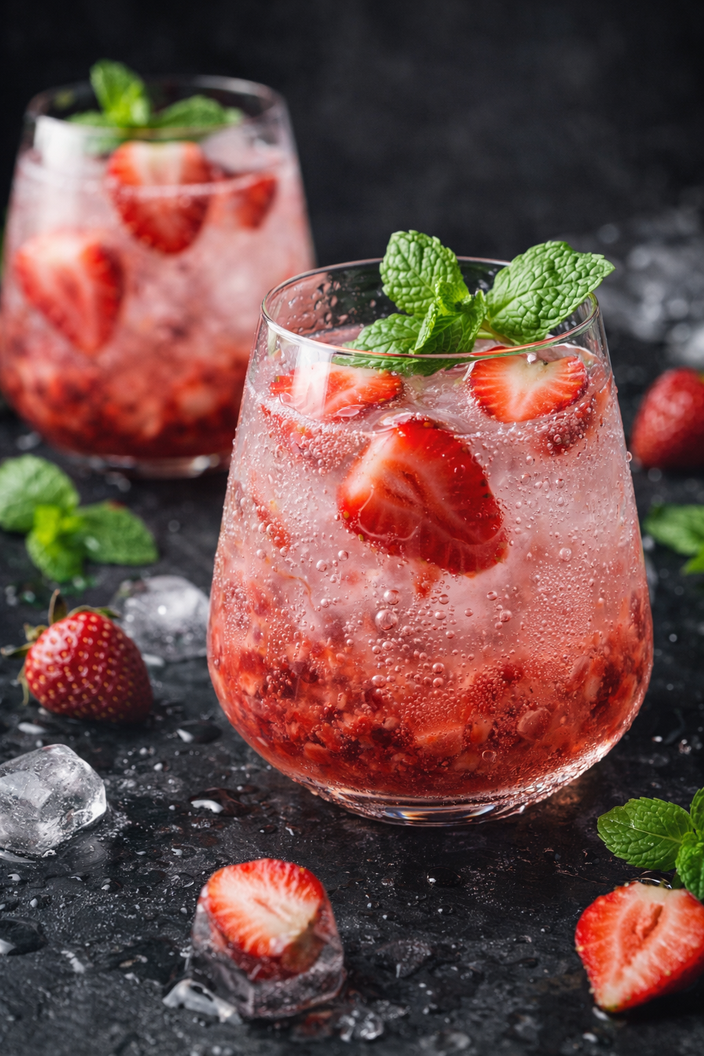 - Pour une présentation élégante, décorez le verre avec une fraise coupée sur le bord et quelques feuilles de menthe.