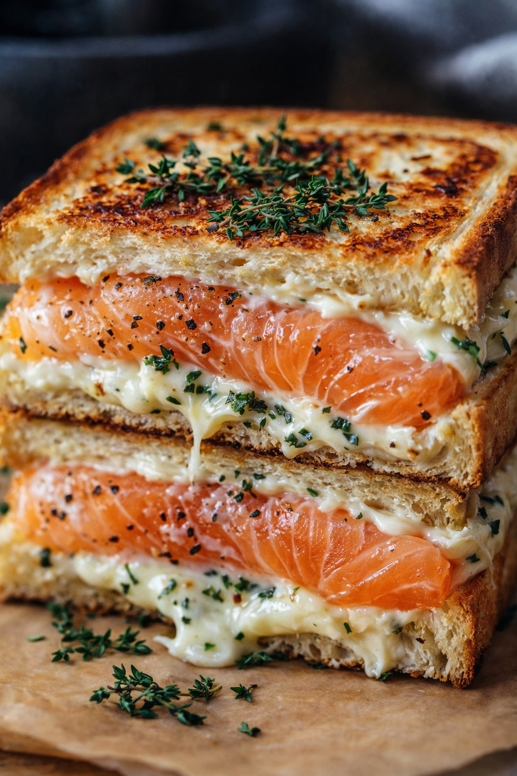 Ce croque au saumon fumé et Boursin est un sandwich chaud fondant et raffiné, parfait pour un déjeuner rapide ou un dîner léger. L’association du saumon fumé et du fromage frais aux fines herbes crée une recette simple mais pleine de saveurs.