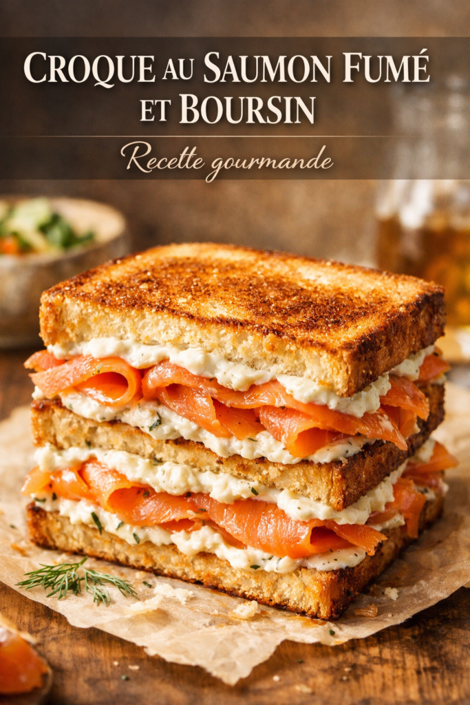 Découvrez le croque savoureux et fondant. Il combine le saumon fumé et le fromage frais Boursin. Cette recette est parfaite pour un déjeuner rapide ou un dîner léger.