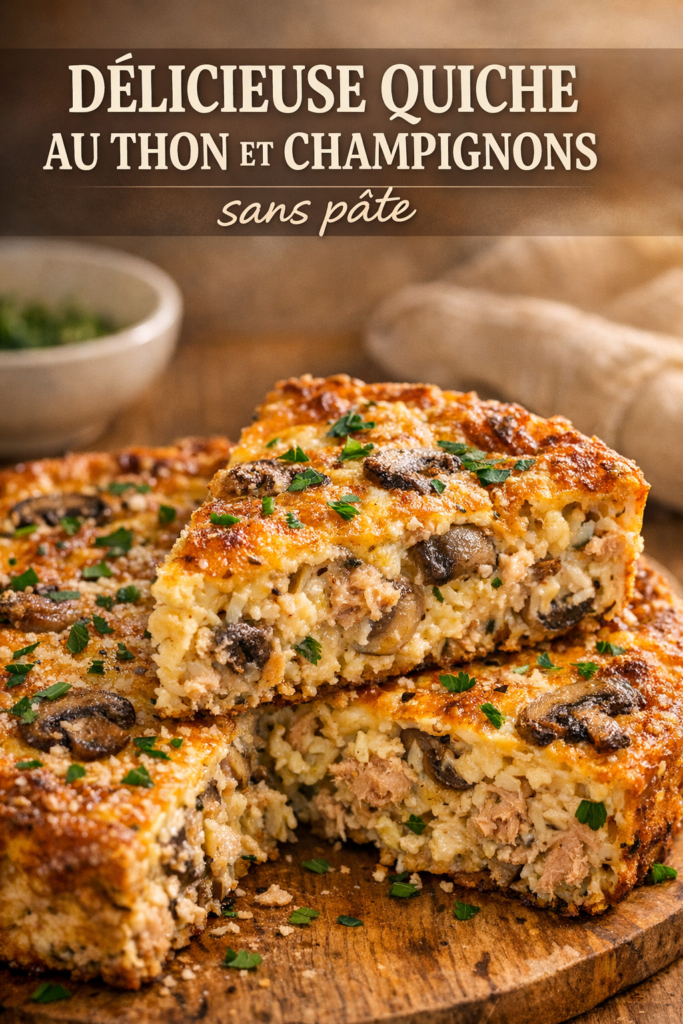 Malgré l’absence de pâte, cette quiche reste rassasiante grâce à la richesse des ingrédients. Les œufs et le fromage apportent une texture crémeuse, tandis que le thon et les champignons ajoutent une touche de saveur et de satiété. C’est donc une option parfaite pour un repas léger mais nourrissant.
