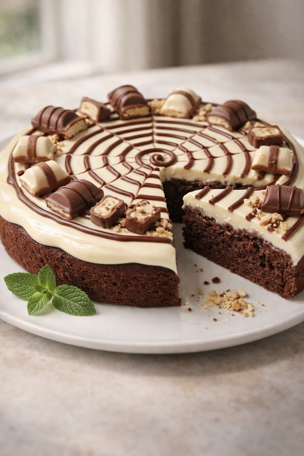 Disposez des Kinder Bueno concassés autour pour une bordure délicieuse.