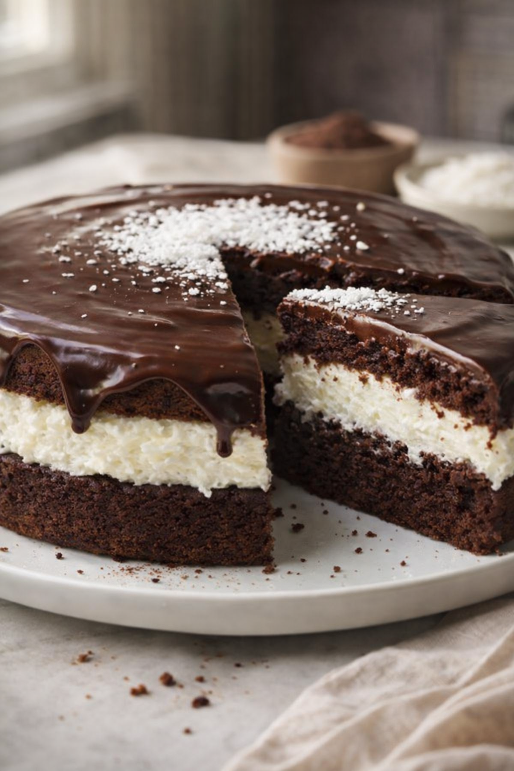 La recette combine le chocolat et le coco. Cela crée un goût unique et délicieux. Vous allez adorer la texture et le goût de ce gâteau.