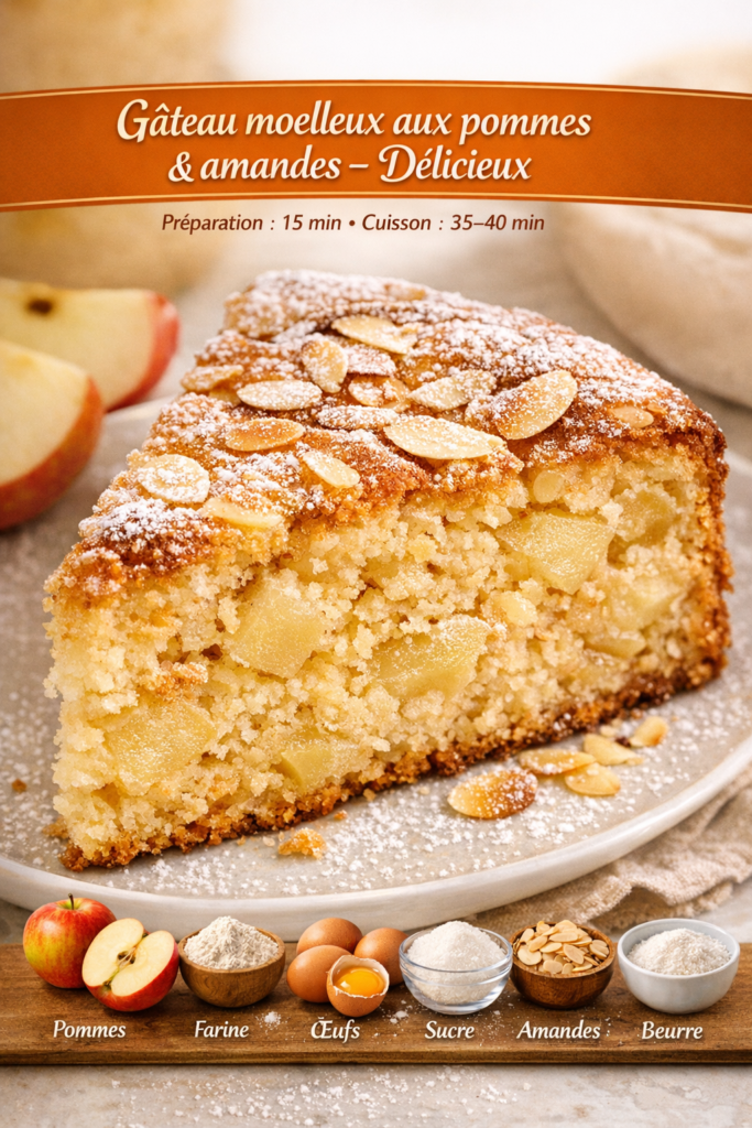 Gâteau moelleux aux pommes et aux amandes – recette délicieuse