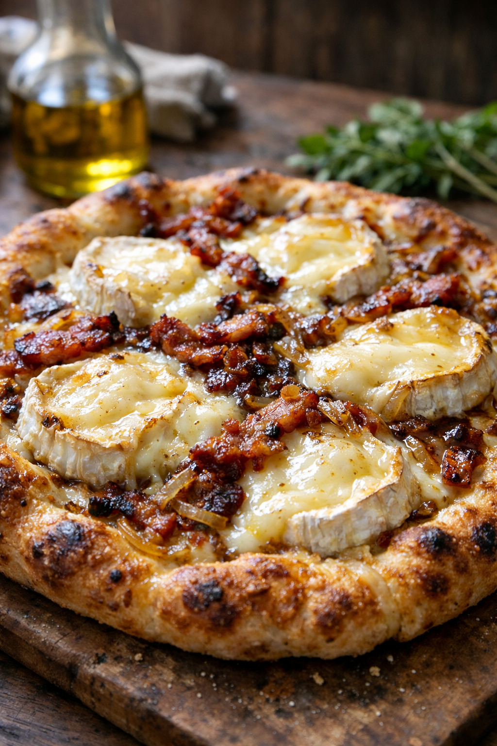 Pizza Camembert Fondante aux Lardons et Oignons Caramélisés