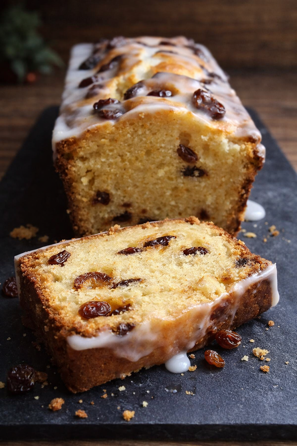 Le cake aux raisins secs peut être servi nature, saupoudré de sucre glace, ou accompagné d’une tasse de thé ou de café pour une expérience gourmande.