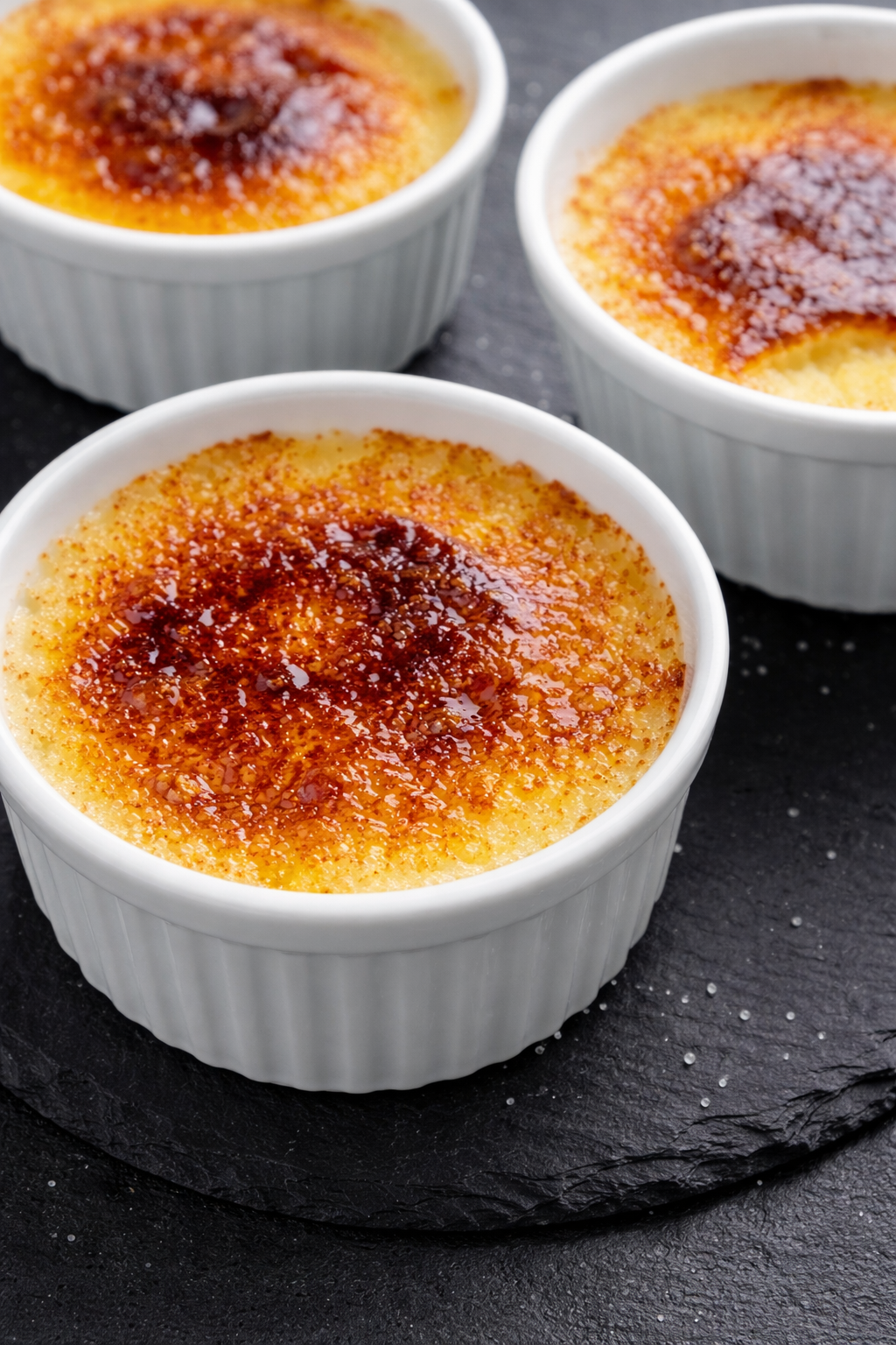 Pour une variation gourmande, ajoutez une fine couche de caramel sur le dessus avant de servir. Conservez les crèmes au réfrigérateur jusqu’à 3 jours sous film alimentaire.