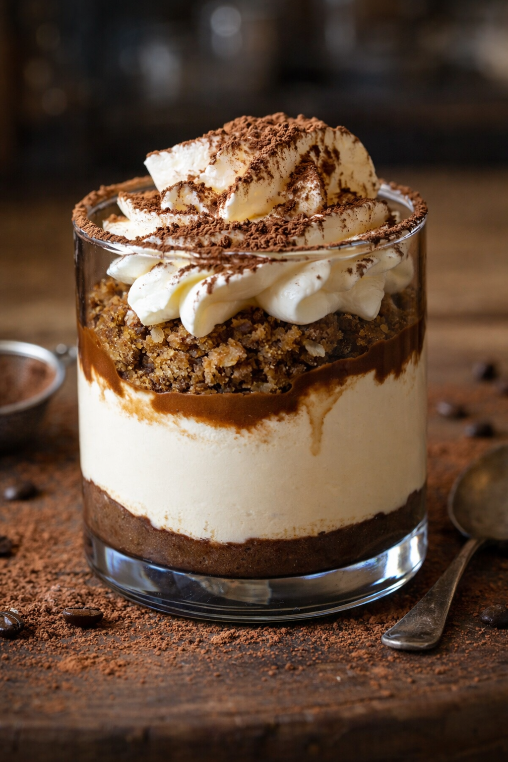 Mini verrines façon tiramisu, associant une crème mascarpone onctueuse, des biscuits imbibés de café et une touche finale de cacao. Un dessert individuel facile, rapide et sans cuisson, parfait pour toutes les occasions.