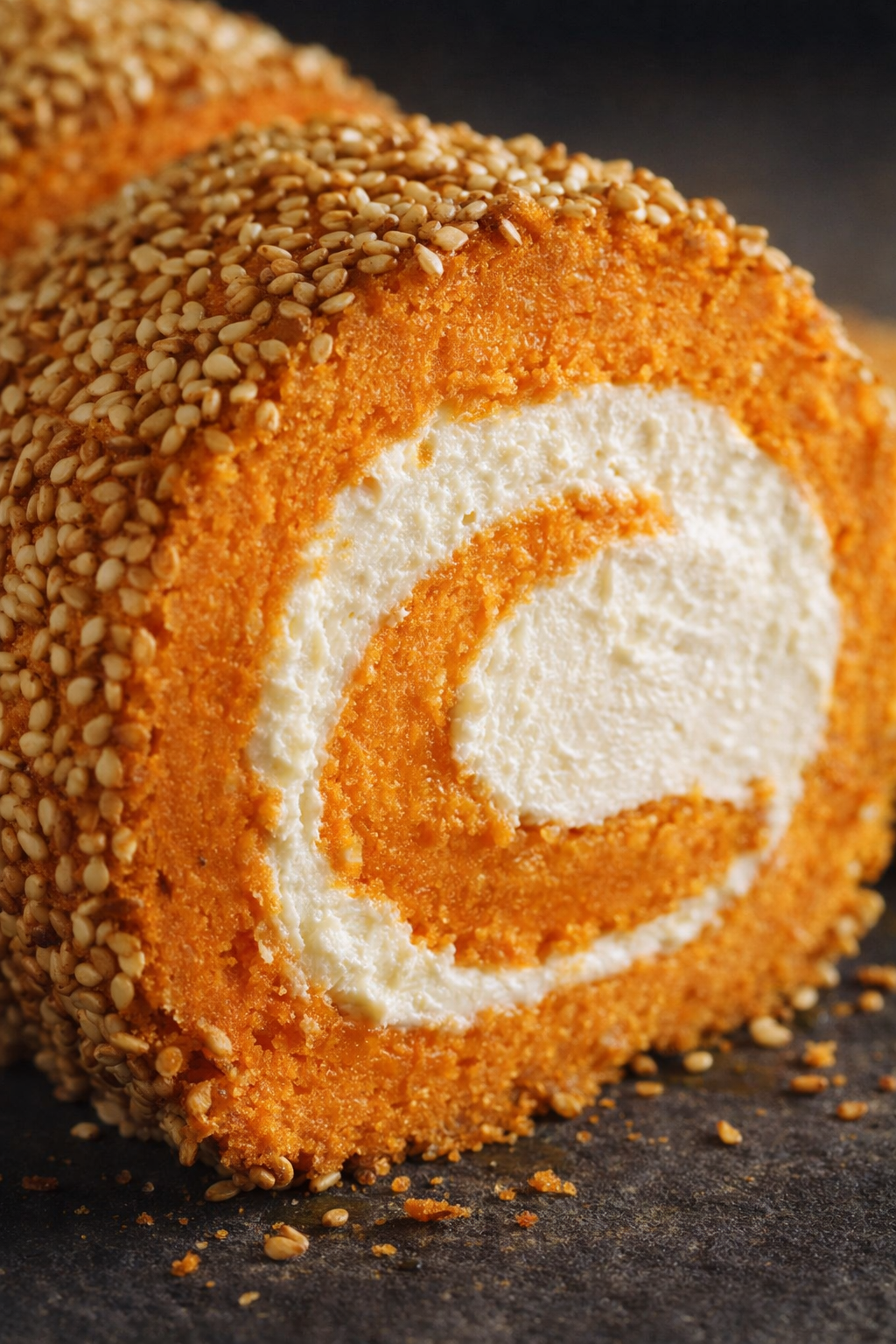Ce délicieux roulé combine la douceur de la patate douce et du miel avec la fraîcheur du chèvre frais, le tout enveloppé dans une croûte croquante de sésame doré.