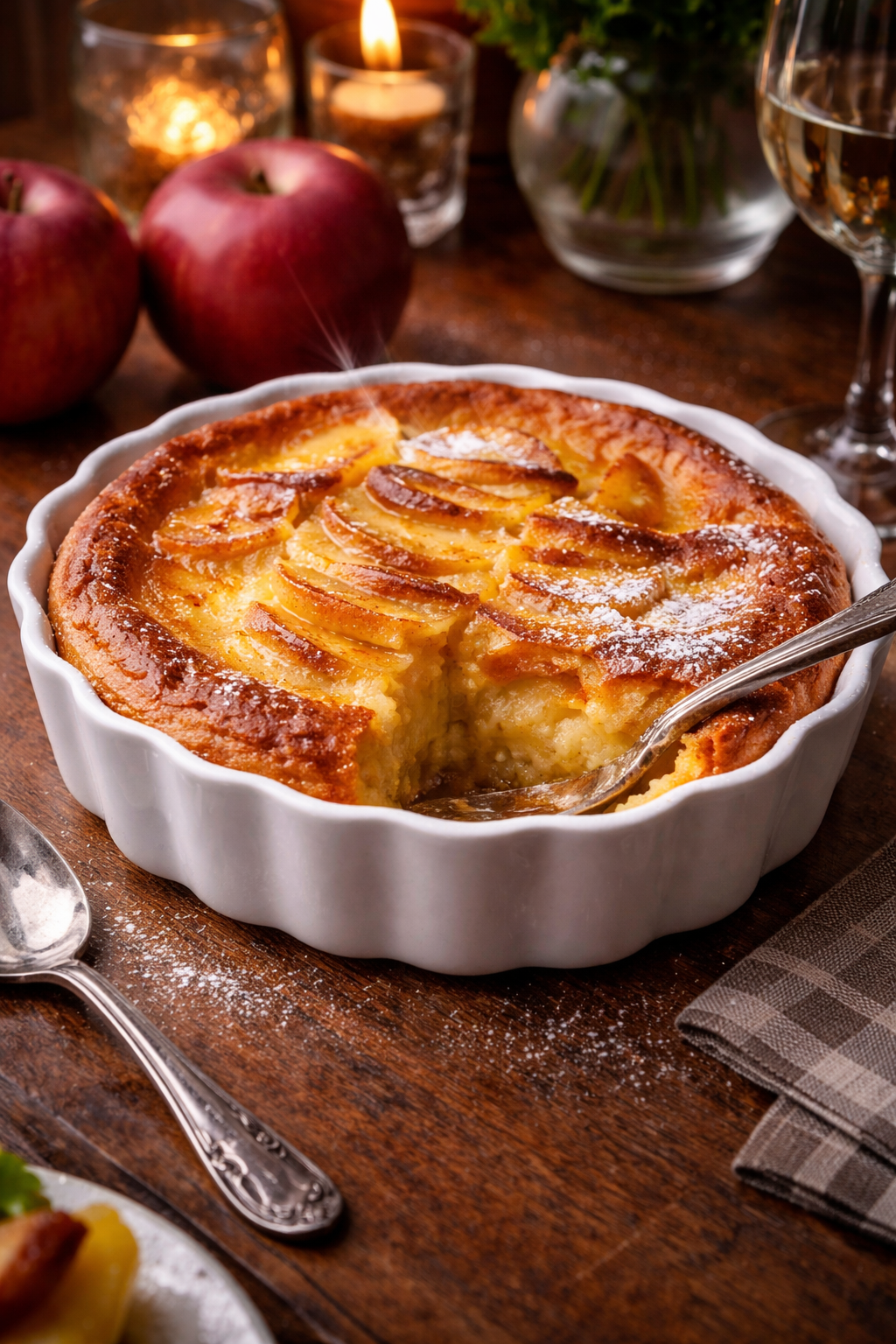 Les pommes caramélisées ajoutent une dimension sucrée et une texture croquante au clafoutis. Ce choix est idéal pour l’automne, saison où les pommes sont abondantes et savoureuses. Le résultat est un dessert riche et réconfortant, parfait pour les soirées fraîches d’automne.