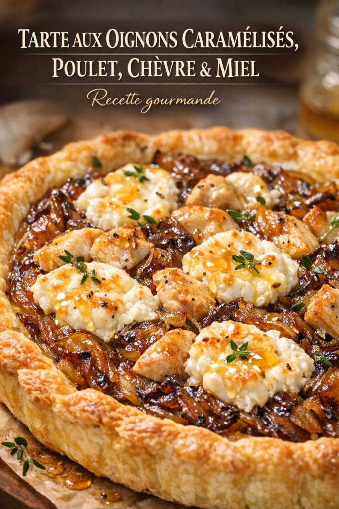 Tarte aux Oignons Caramélisés, Poulet, Chèvre et Miel