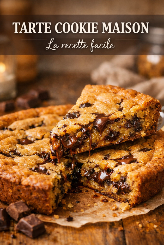Une tarte cookie moelleuse et gourmande, parfaite comme dessert ou gourmandise à partager. Cette tarte façon cookie géant allie la pâte à cookie traditionnelle à une texture fondante et croustillante à la fois.