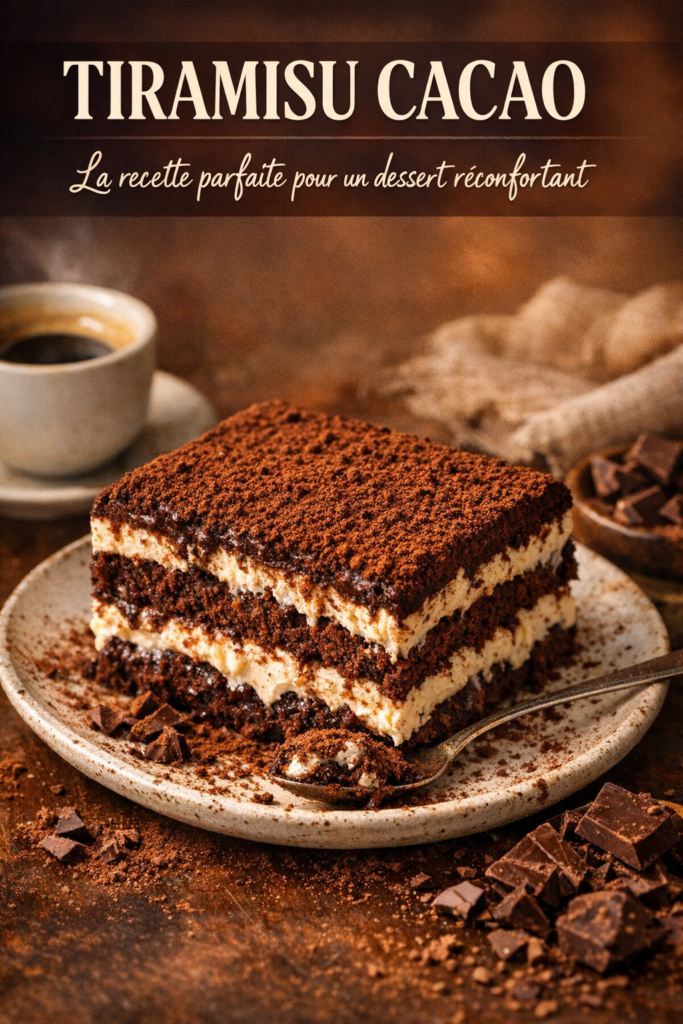 Le tiramisu cacao est une variante délicieuse du tiramisu classique, alliant les saveurs intenses du café, du mascarpone et du cacao. Ce dessert italien emblématique est parfait pour ceux qui cherchent à se réconforter avec une touche de chocolat.