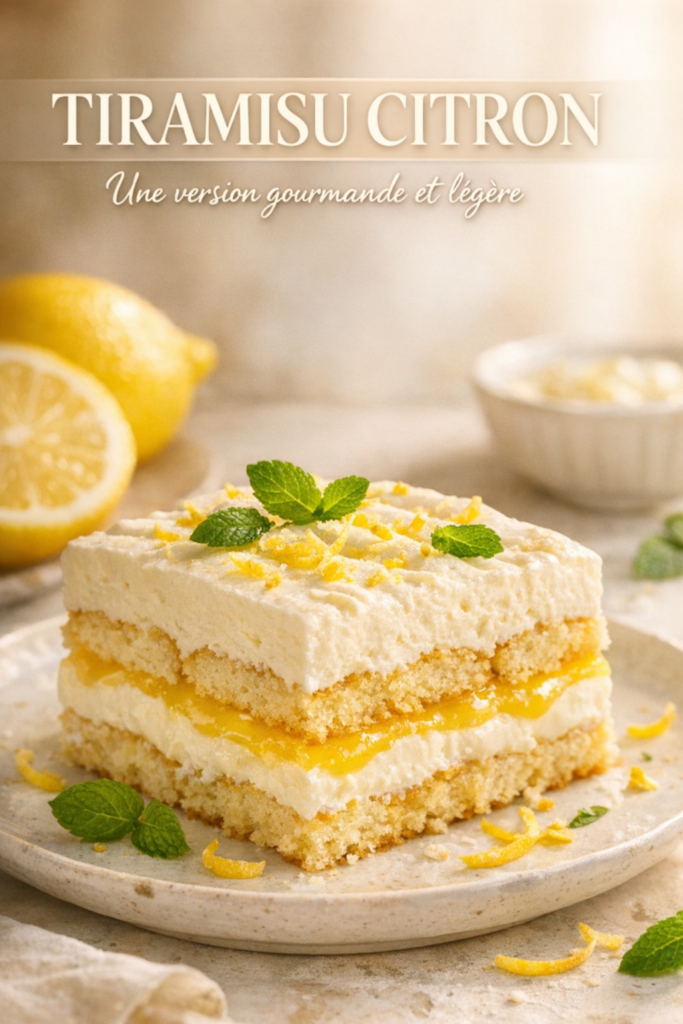 Un tiramisu au citron frais et léger, qui combine la douceur de la crème au mascarpone avec l’acidité délicate du citron. Un dessert sans cuisson parfait pour les amateurs de saveurs fruitées.
