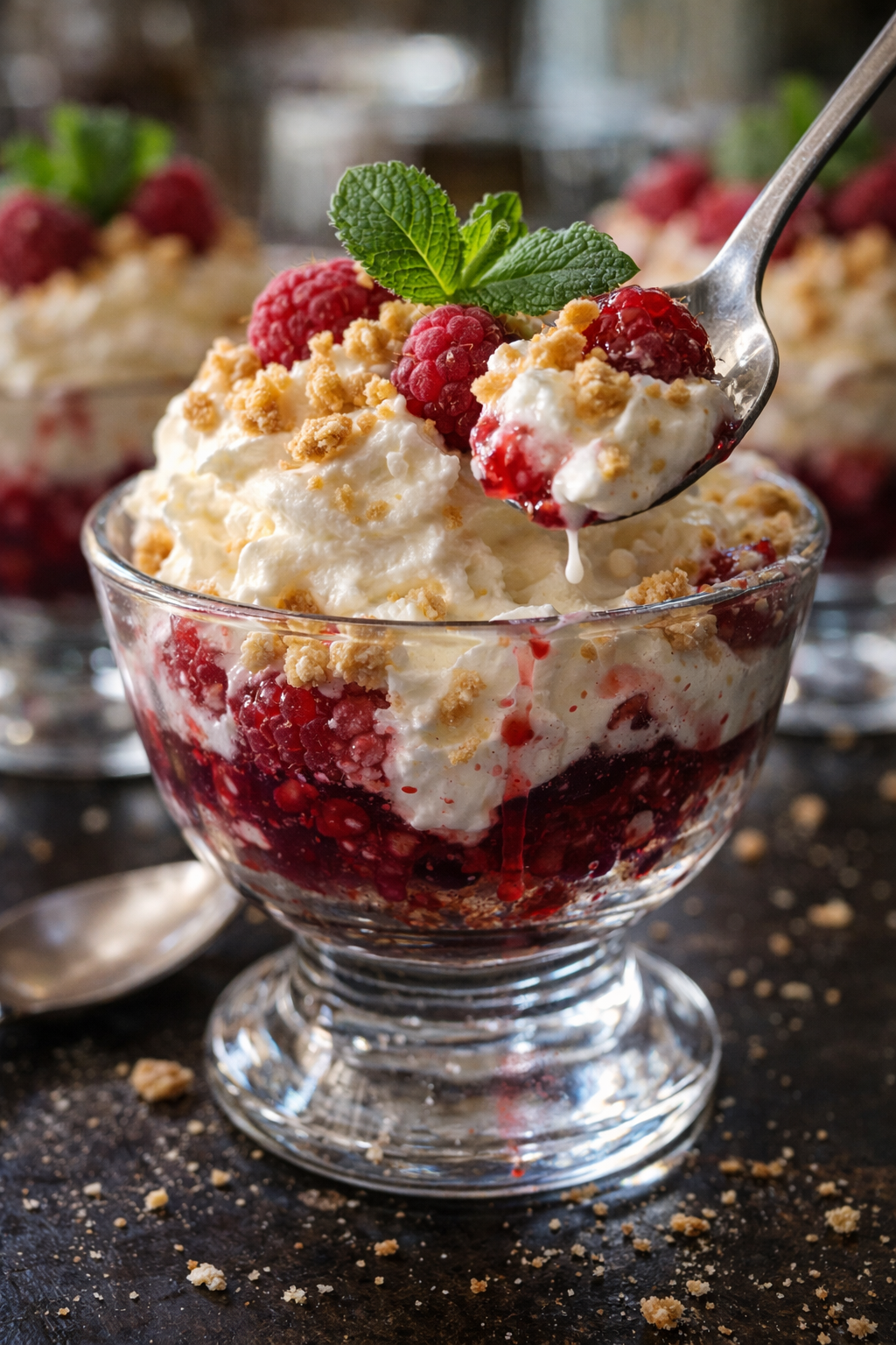 - ajoute 2–3 framboises entières contre la paroi du verre avant de pocher la crème (effet “bijou” immédiat)